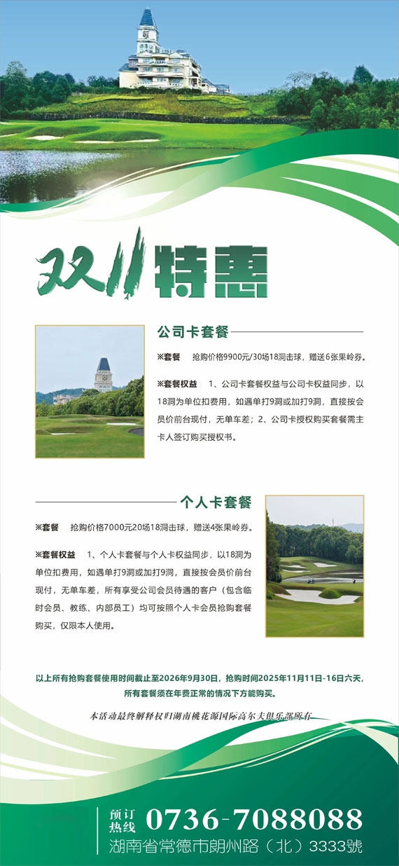 湖南桃花源国际高尔夫双十一会员福利狂欢开启!