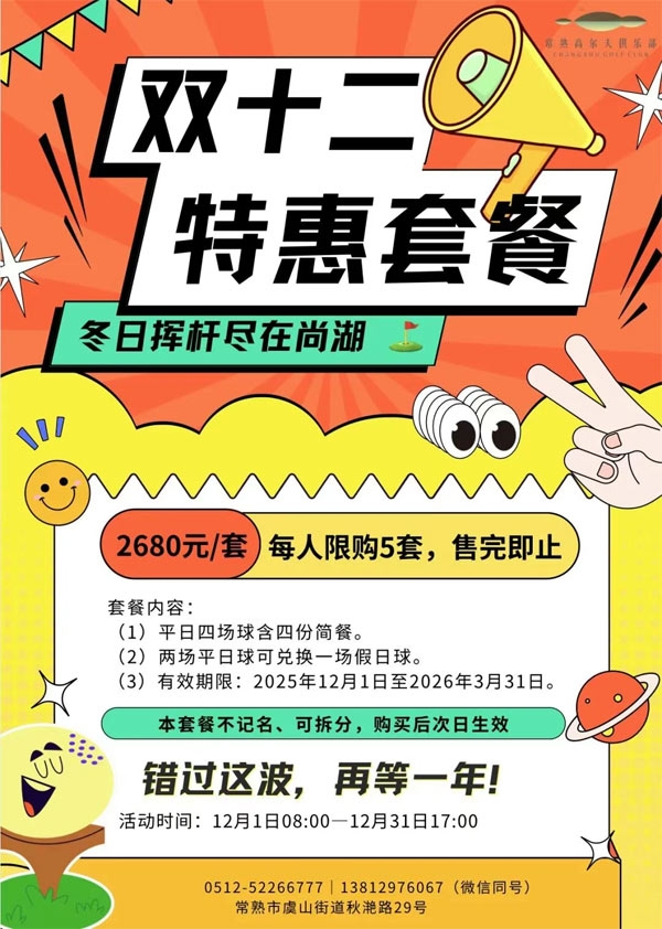 感恩温暖相伴,常熟尚湖高尔夫球场双十二特惠抢先看!