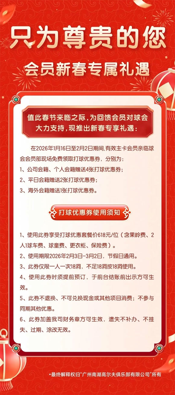 广州南湖高尔夫2026年会员新春专属礼遇!