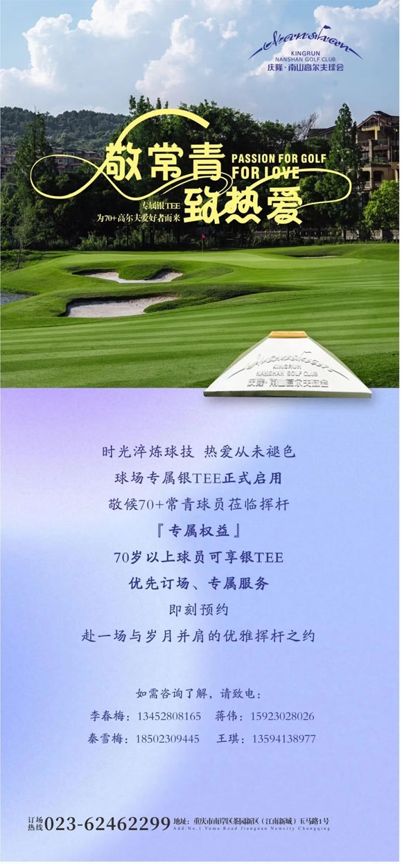 专为70岁以上常青球员打造的银TEE,距离更适配,障碍更友好,动线更便捷,让咱们打球不用再为体能顾虑,只管享受挥杆的快乐~