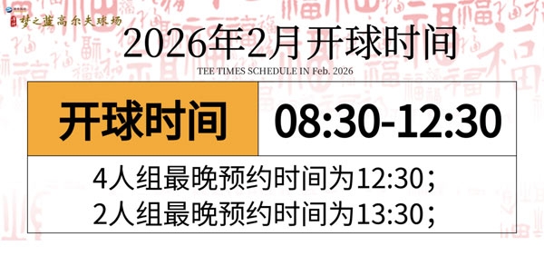 您好!洋河梦之蓝高尔夫球场2026年2月开球时间安排如下: