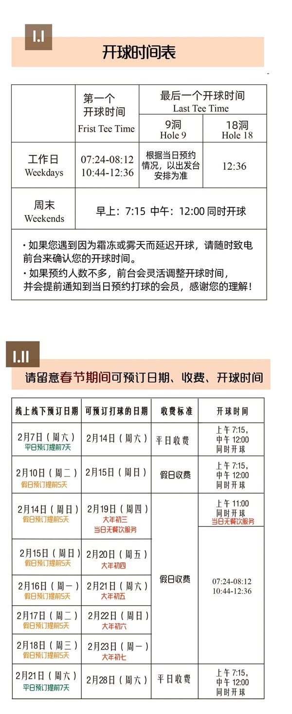 马年春节假期开球时间及假期可预订日期安排已出,请查看下方时间表。