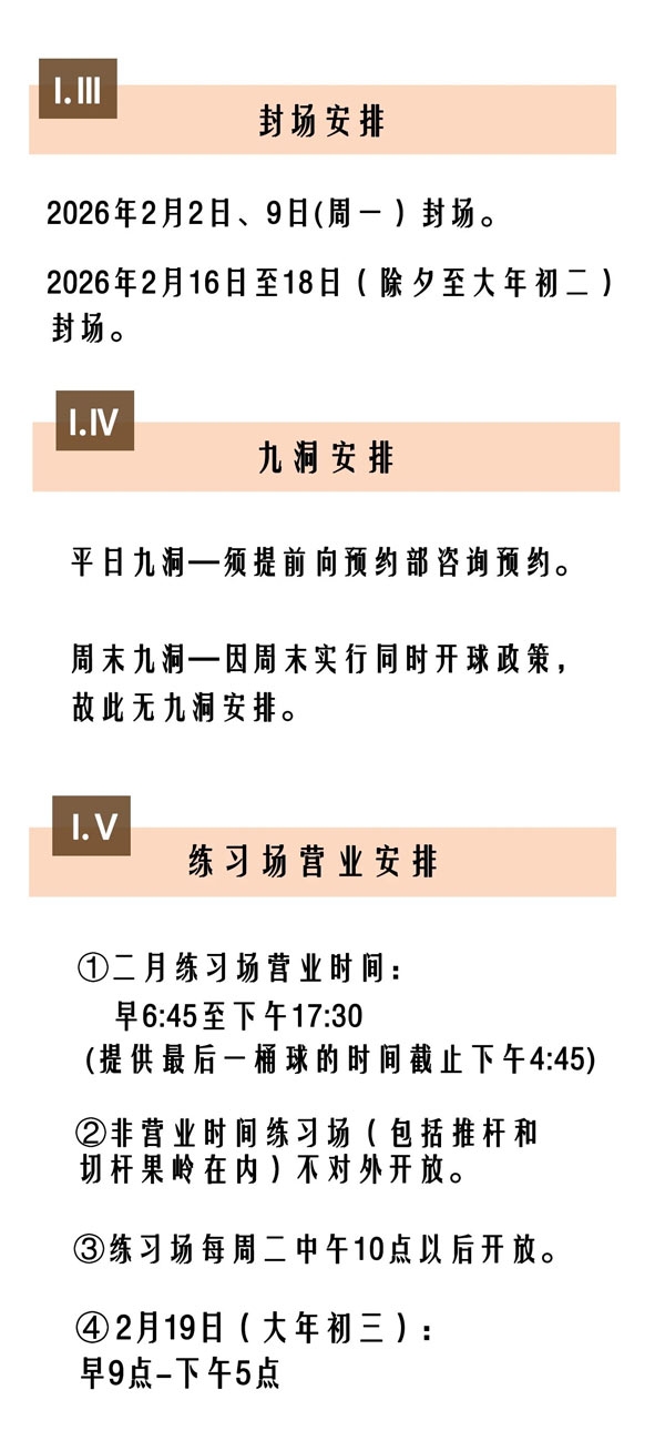 上海佘山高尔夫马年春节假期开球时间及2月开球时间