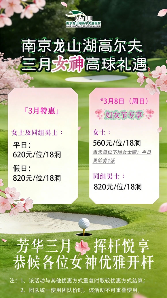 560元/18洞!南京龙山湖三月女神高球礼遇
