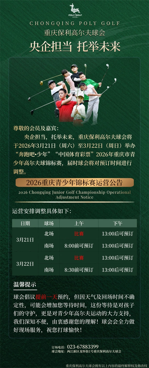 【重庆保利高尔夫】2026重庆市青少年锦标赛运营公告