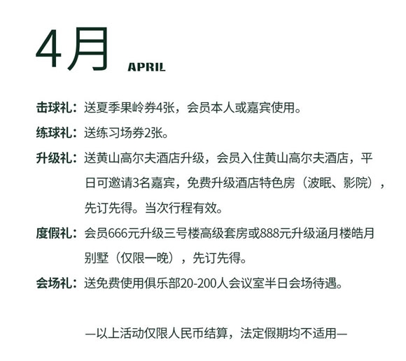 悦享时光,黄山松柏高尔夫会员4月至6月专属礼遇