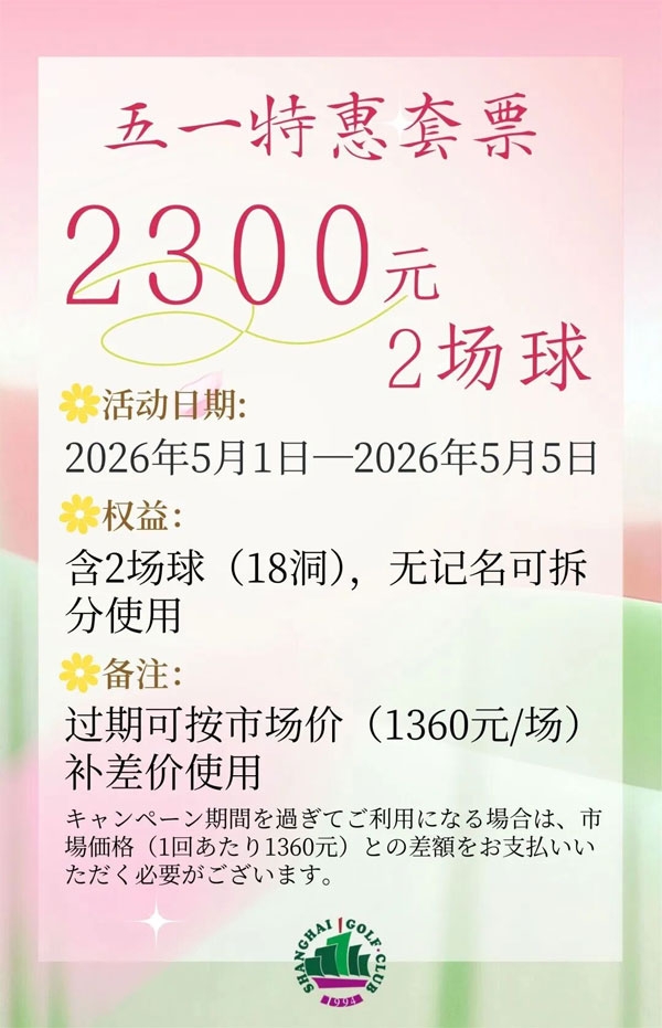 • 权益:含 2 场球(18 洞),无记名可拆分使用