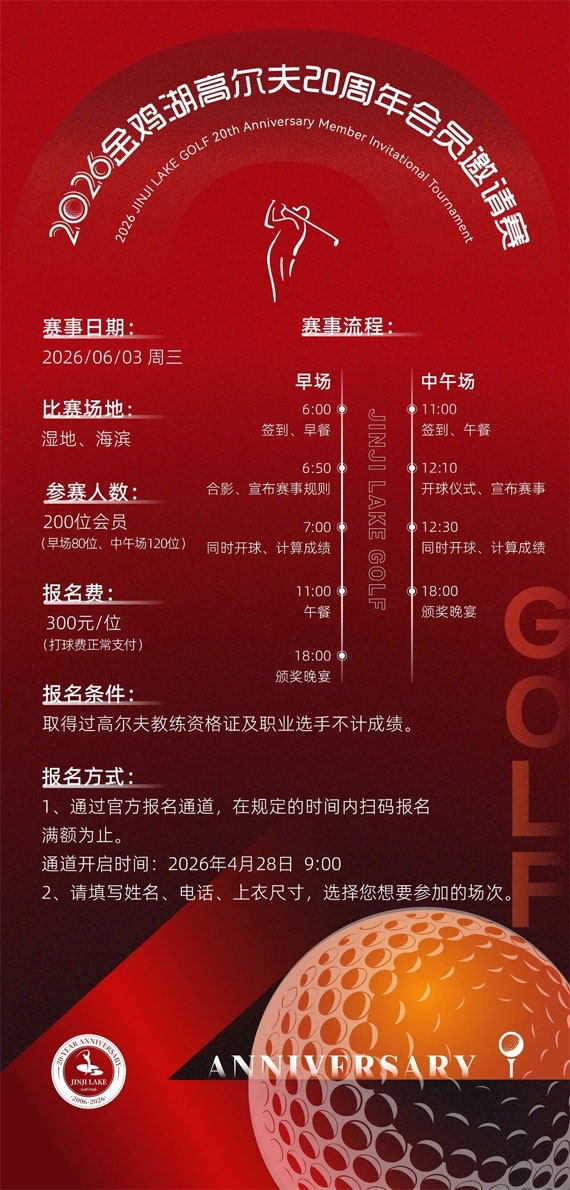 报名-2026苏州金鸡湖高尔夫20周年会员邀请赛共襄盛举