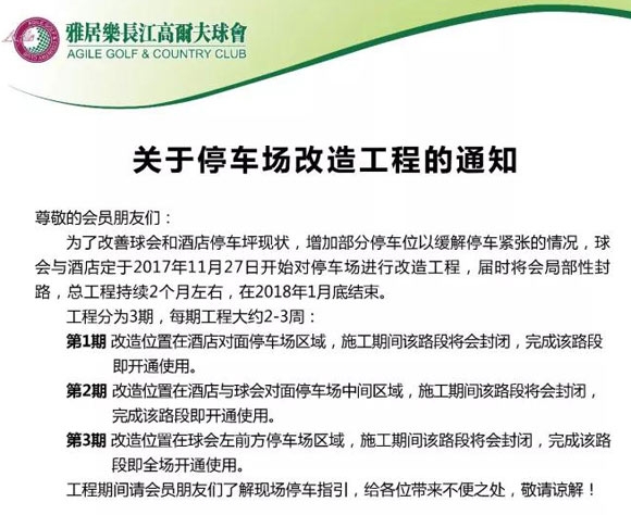亲爱的会员: 金沙湖国际高尔夫球会将于明日(11月24日,周五)举办“2017郎酒·青花郎杯高尔夫邀请赛”,为营造良好的比赛环境,当…