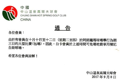 广东中山温泉高尔夫阿诺庞玛场10月10日-12日赛事公告