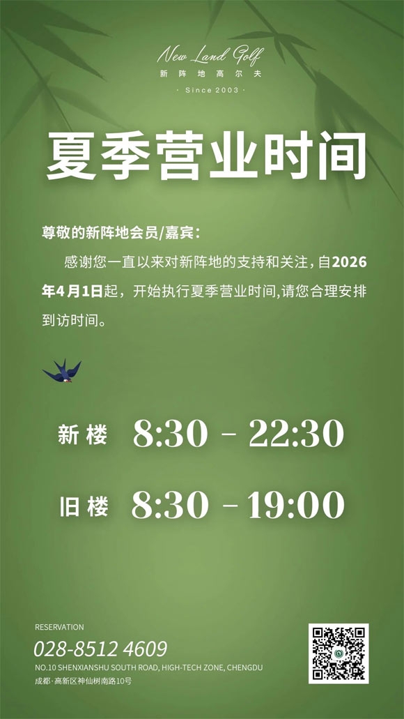 2026成都新阵地高尔夫夏季营业时间调整通知
