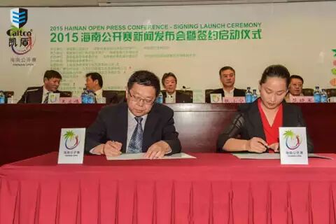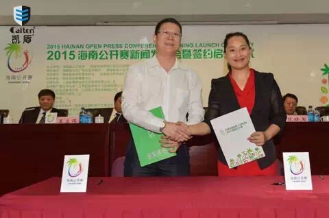 在领导发言后,发布会现场进行了“海南公开赛”与赞助商达成战略合作的签约仪式