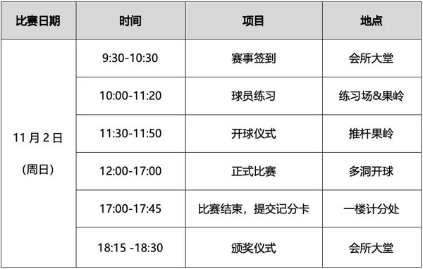 4.如因恶劣天气导致比赛无法完成18洞,本次比赛将取消,不再颁发任何奖项。