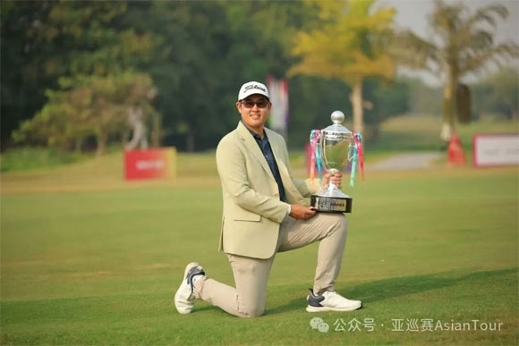 这位泰国球手没有放过任何机会,虽然在前7个洞吃下2个柏忌,但是后边添加了5只小鸟,包括在最后一个洞用9号铁大力进攻,将球打到距离洞口10英尺处,接着拿下制胜的小鸟推,交出69杆(-3),以270杆(66-69-66-69,-18)的总成绩实现了亚巡赛冠军的突破。
