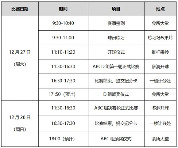 五、比赛形式:A、B、C组两轮(36洞)个人比杆赛;D组一轮(18 洞)个人比杆赛