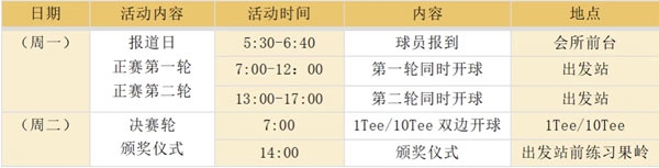 *开球时间和TEE台以组委会发布的分组表为准。