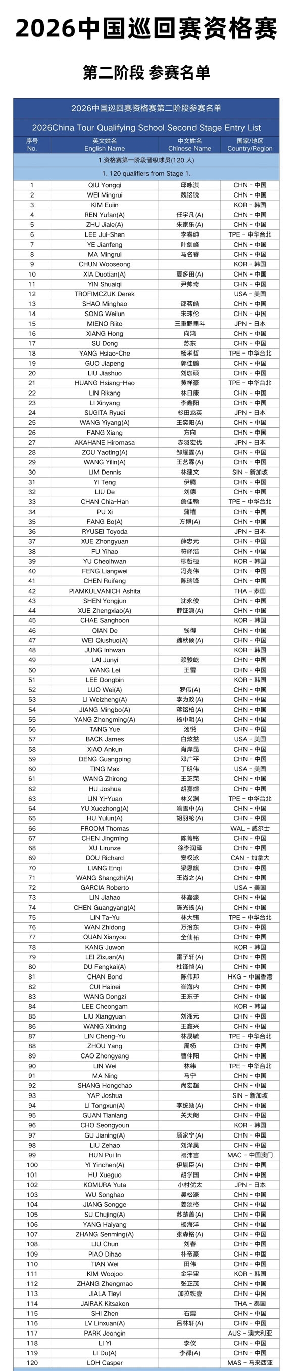 作为通往新赛季的关键关卡,本场赛事汇聚了204名球员,他们将在此风光旖旎的赛场展开对决,角逐2026中国巡回赛赛季的入场券,为高球爱好者献上一场兼具力量美学与竞技智慧的顶级视觉盛宴。