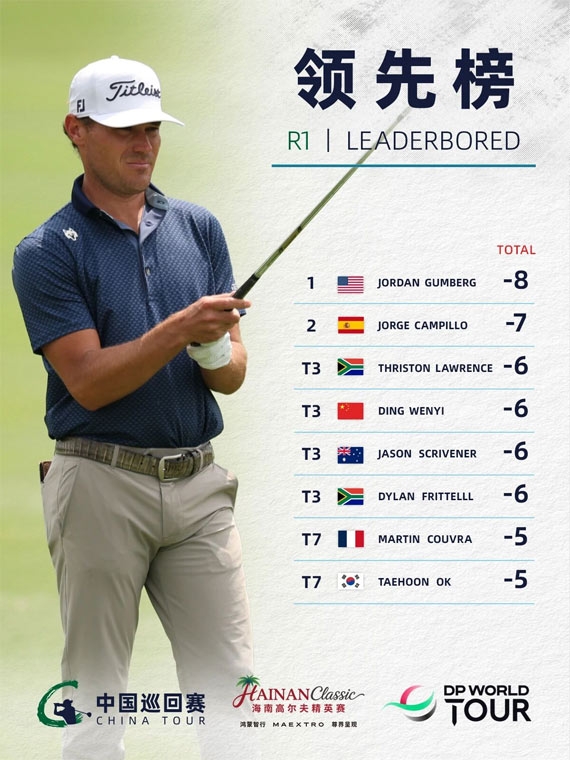 乔丹·冈伯格领跑海南高尔夫精英赛首轮,丁文一擒双鹰