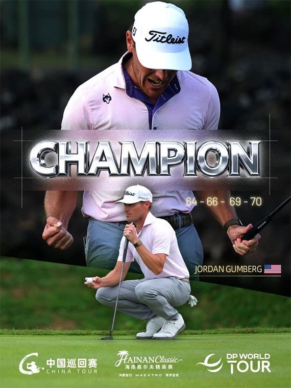 北京时间3月22日,由鸿蒙智行 MAEXTRO 尊界呈现,中国巡回赛与DP World巡回赛联合认证的海南高尔夫精英赛在海口观澜湖高尔夫球会圆满落幕。经过18洞令人窒息的终极较量,美国球手乔丹·冈伯格(Jordan Gumberg)凭借极其稳健的防守策略,决赛轮交出70杆(-2),以四轮总成绩269杆(-19)惊险折桂,捧起冠军奖杯,夺得个人DP World巡回赛第二冠。中国小将周彦含则以堪称完美的稳定表现交出69杆(-3),以总成绩273杆(-15)斩获并列第三名,荣膺本次赛事最佳中国球员。丁文一、郑蕴和、金博、柴博文、等本土名小将挤进前列。
