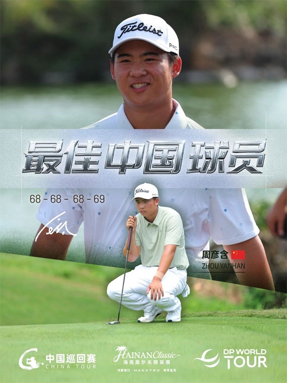 在主场球迷的热烈簇拥下,中国小将周彦含打出了令人叹为观止的一周。在决赛轮中,他延续了前三天的火热手感,全场抓下5只小鸟。纵观四轮比赛,周彦含交出了令人震撼的68-68-68-69的计分卡。在风云变幻的高级职业赛场上,这种极其罕见的稳定性证明了他在技术与心理层面的双重蜕变。最终,他以-15杆的总成绩高居并列第三,毫无争议地将“最佳中国球员”奖项收入囊中。