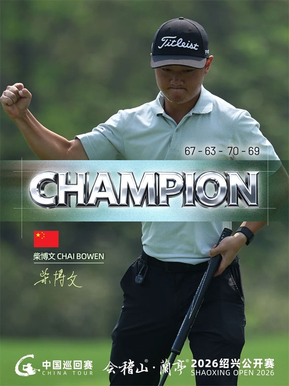北京时间4月19日,会稽山·蘭亭·2026绍兴公开赛在绍兴会稽山高尔夫球会圆满收官。经过四轮激烈角逐,中国球员柴博文在决赛轮顶住泰国与英格兰选手的强力冲击,打出69杆(-3),以总成绩-19、一杆优势夺得个人中巡赛首座冠军奖杯。泰国选手NIYOMCHON Donlaphatchai决赛轮交出71杆(-1),总成绩-18位列第二名。英格兰球员Matt KILLEN决赛轮交出71杆(-1),总成绩-15位列第三名。